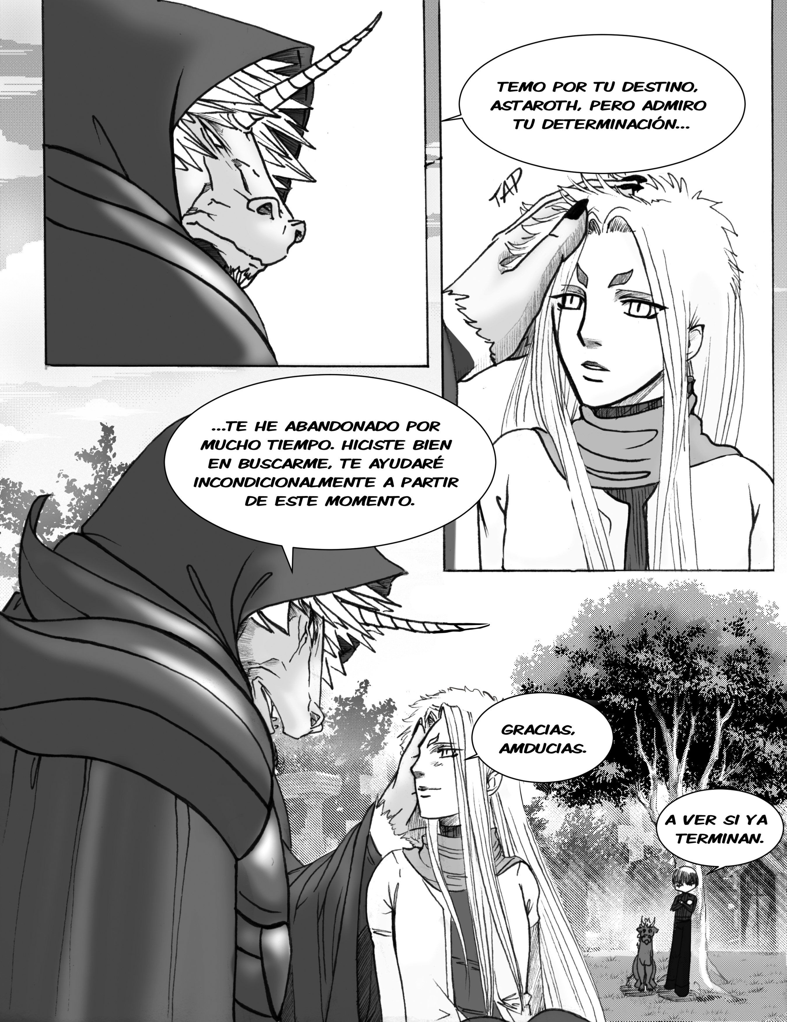Uriel se queja pero bien que siempre acaba ayudando jajajaja y salio Mefisto!! (perdón, amo su diseño XD)